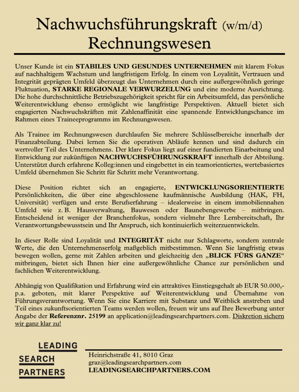 Sympathisches und kompetentes Team • Flexible Arbeitszeiten mit teilweiser Homeoffice-Möglichkeit • Abwechslungsreiche Aufgaben in einem steirisch/kärntnerischen mittelständischen, spezialisierten Unternehmen • Geboten wird eine marktkonforme Überzahlung abhängig von Qualifikationen und Erfahrung. Aus gesetzlichen Gründen weisen wir darauf hin, dass ein KV-Mindestgehalt von € 2.124,- brutto pro Monat (Vollzeit) gilt.
